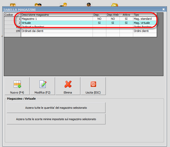 Ora, il messaggio della giacenza -1 compare quando stai emettendo un documento. Questo documento utilizza l'unico magazzino standard presente, il MAGAZZINO 1 poichè il magazzino VIRTUALE non può essere movimentato con un documento.