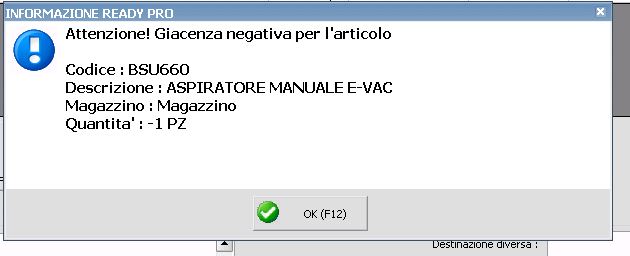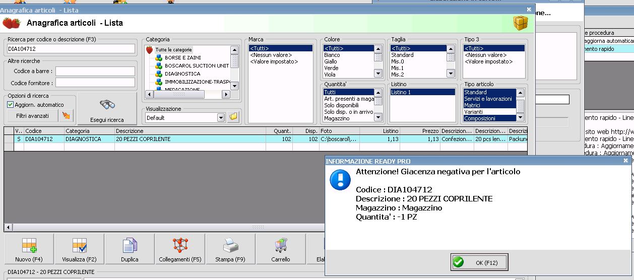 Citazione: del primo screenshot che non mi permette di proseguire. Il messaggio che compare avvisa della giacenza non presente, ma premendo OK permette di proseguire