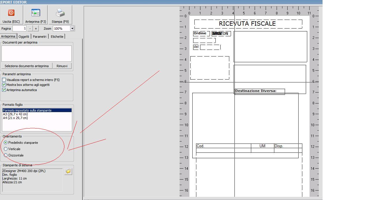 -Installare 2 volte il driver della stampante, oppure condividere la stampante sul PC e rimappare un secondo driver su se stessa, in modo da poter configurare un driver in un modo ed uno in un altro -oppure prova a modificare l'orientamento sul driver, modifica il modulo di stampa, poi rimetti il driver con l'orientamento originale e prova modificando l'orientamento con il selettore che hai evidenziato sopra con il report editor