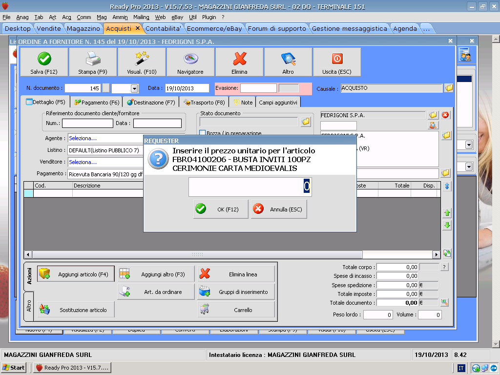 ordine al fornitore