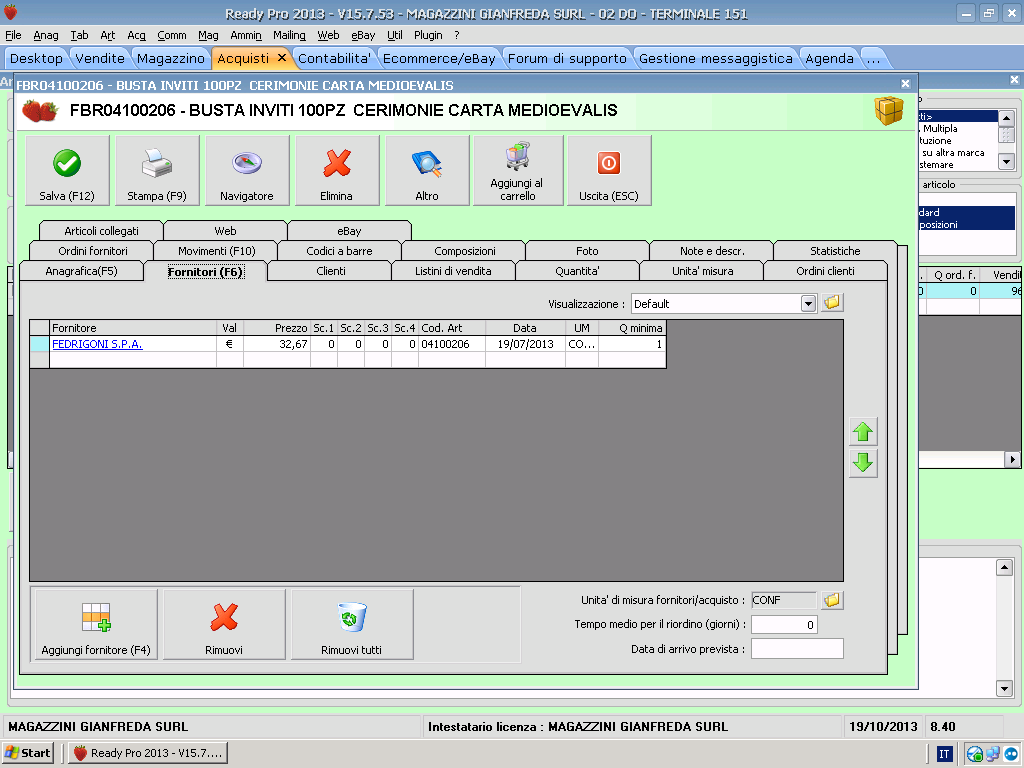Inoltre, se per un articolo imposto come lotto di vendita 10 pz, e alla vendita inserisco 13, il programma mi avvisa che posso venderne o 10 o 20. E' possibile far uscire lo stesso avviso nel momento in cui faccio gli ordini al fornitore? Tenendo presente che è stata già impostata la Quantità Minima Ordinabile?