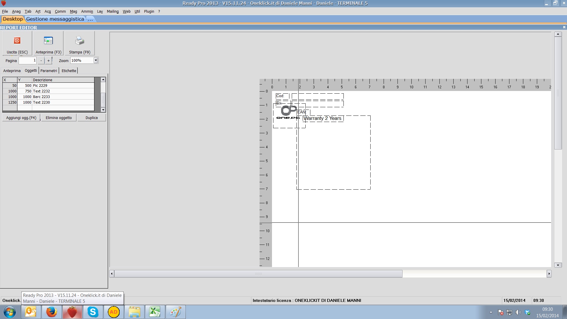 Buongiorno, sto realizzando delle etichette sulle quali inserisco codice prodotto, seriale, e codice ean