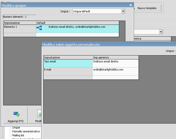 Allego la configurazione dell'indirizzo per la notifica, così come l'abbiamo fatta da "Template e Contenuti".