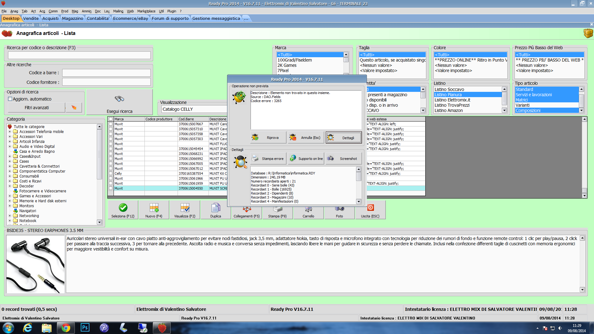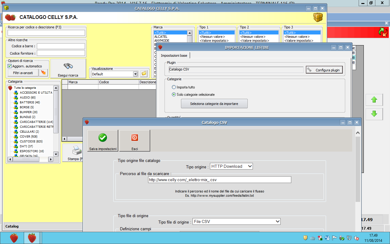 In allegato screen shot elenco articoli del catalogo celly, sembra ok. Inoltre allego pure info circa il csv. E' normale che mi porta sulla pagina web del sito celly? Dai un occhiata.....
