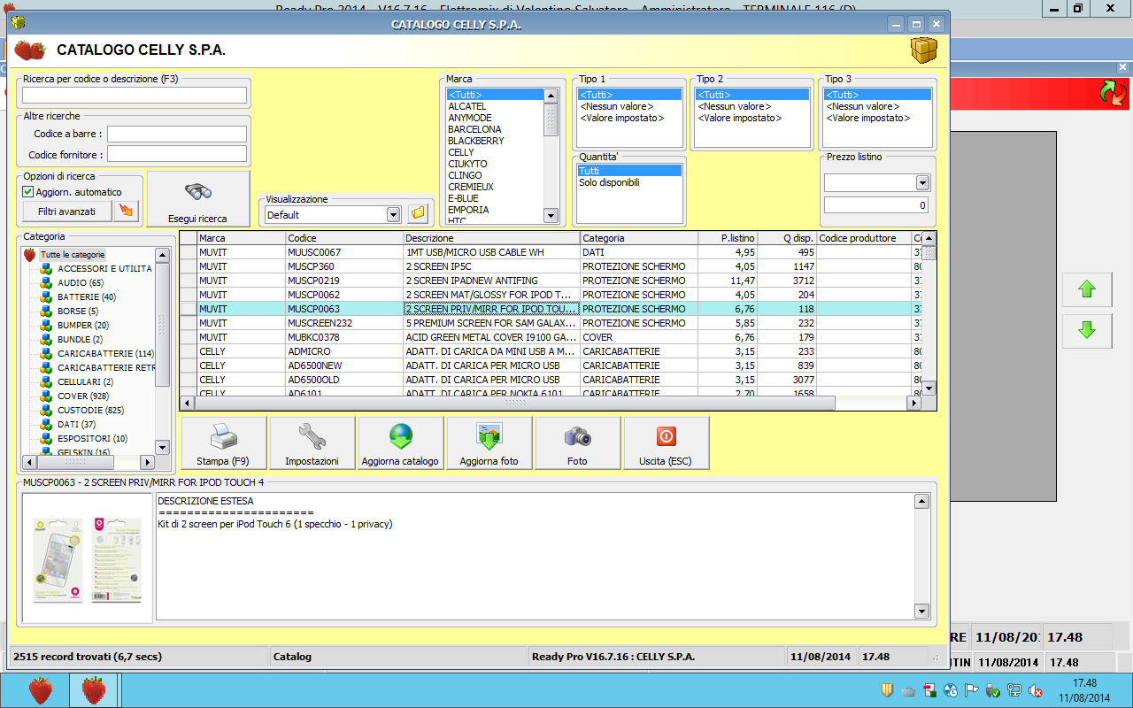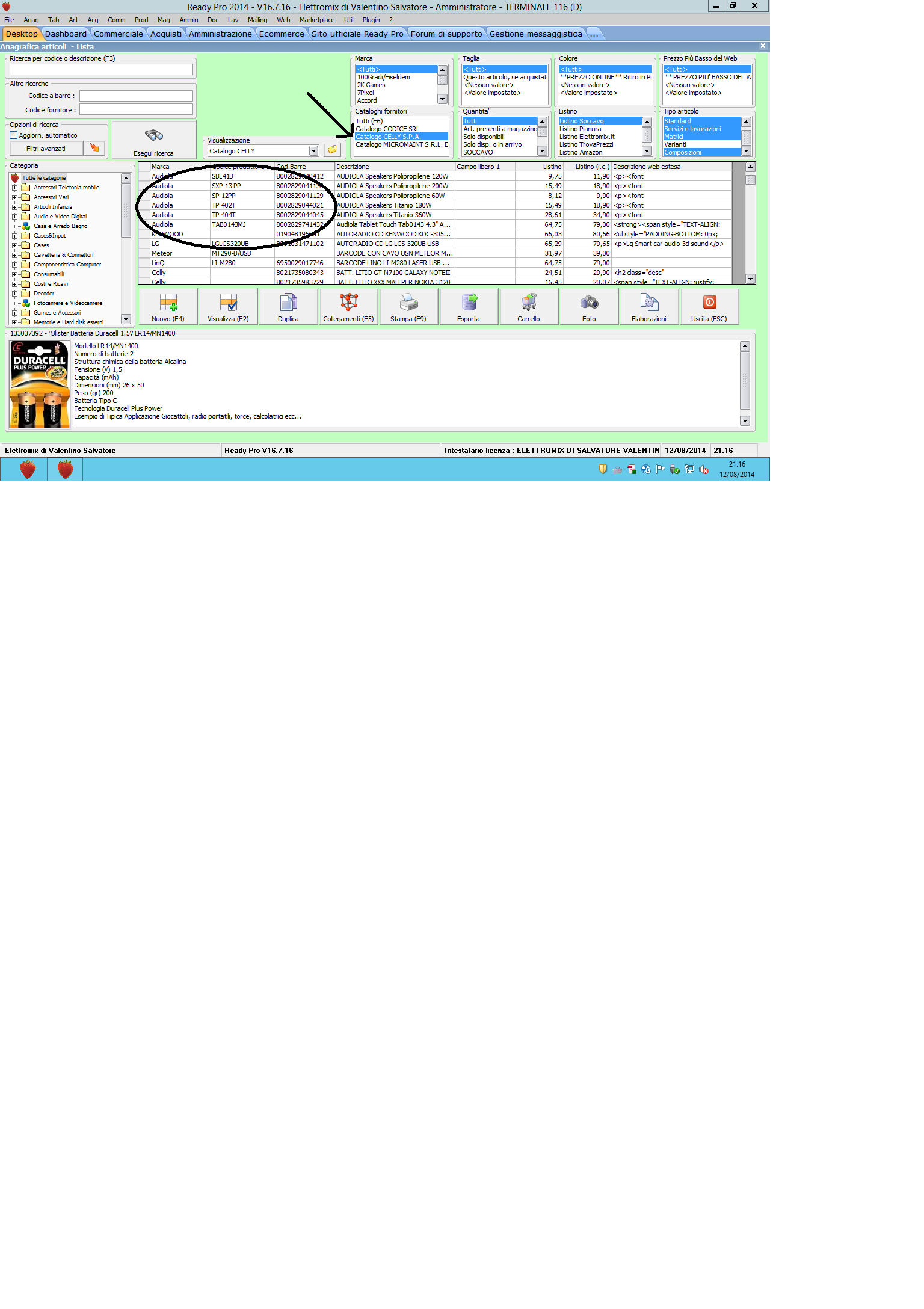 notavo un'altra cosa.....se uso il filtro di ricerca "catalogo celly" non mi restituisce l'elenco articoli del catalogo celly ma anche altri articoli che non appartengono al catalogo. Come mai?