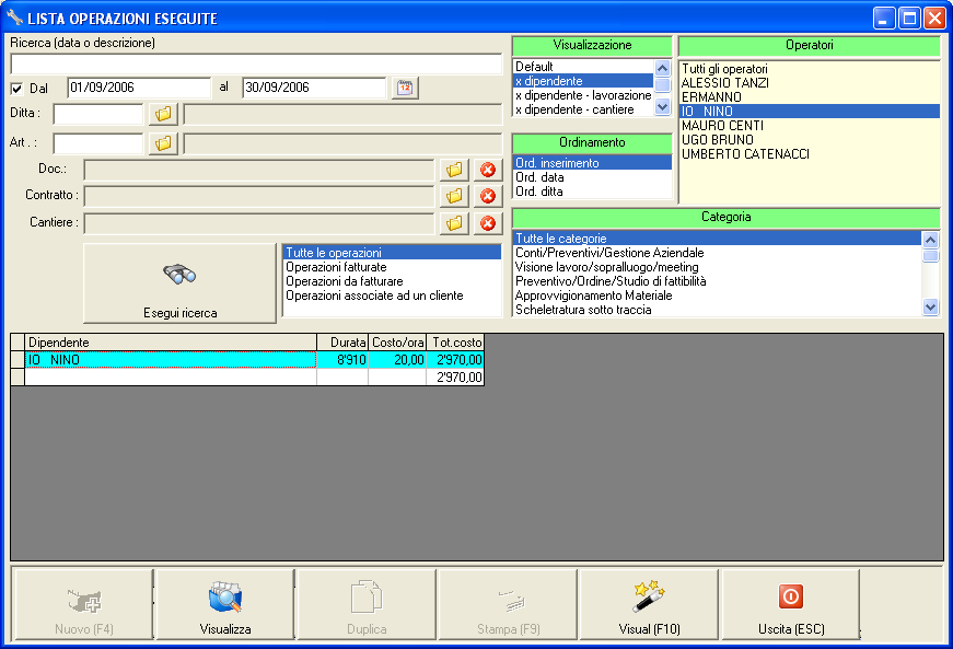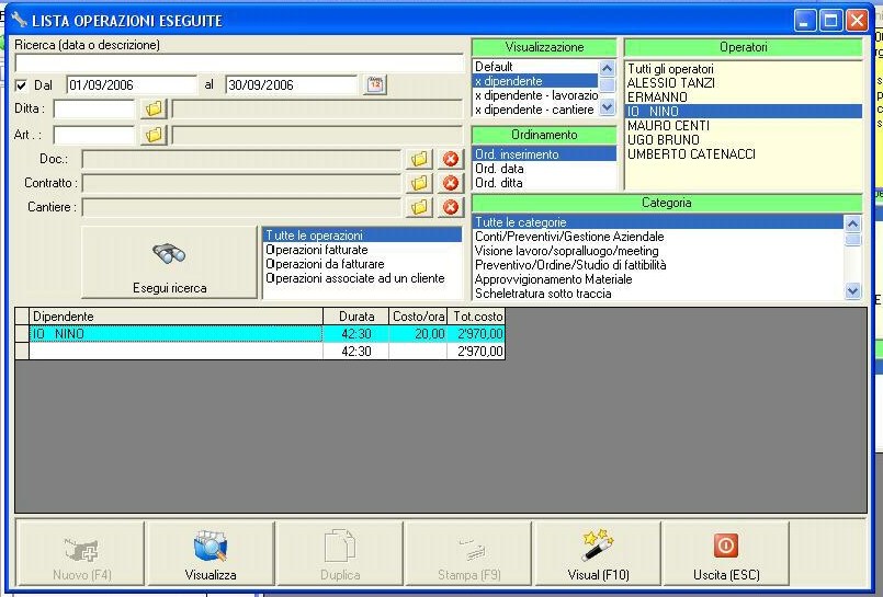 salute.... c'è un bel problemino con la lista delle operazioni eseguite.... non esegue il conteggio delle ore esattamente come dovrebbe se visualizzo solo x dipendente. se invece ci metto una qualsiasi altra variabile da visualizzare... tutto ok. La cosa strana è che il totale del costo è ok, il prezzo orario idem, e il conto delle ore (che non è altro che la divisione del primo valore x il secondo) và a farsi benedire..... questo accade solo quando le ore superano un certo valore, al di sotto (x non tante ore intendoe non sò quando cambia...) è tutto ok.... si può correggere? saluti a tutti