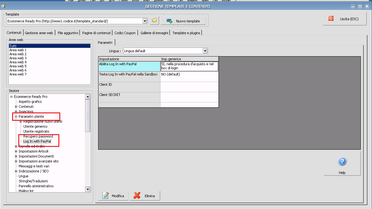 Citazione: io non trovo questa funzione nelle sezioni di gestione template, devo acquistare qualche plugin? Mmmmm usiamo paypal pro Nell'ultimo template le opzioni sono state spostate sotto la voce "Parametri utente"