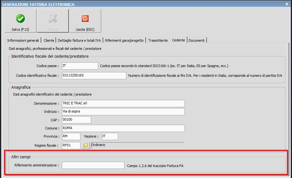 Scusate mi inserisco in questa discussione molto simile alla ns. situazione Oltre al codice univoco ufficio, l'ente ci chiede di inserire nella fatturazione elettronica anche il codice Riferimento Amministrazione, che è un identificativo interno dell'ufficio destinatario, e viene dichiarato che tale campo va valorizzato in corrispondenza dell'elemento riportato nel tracciato della fattura elettronica denominato appunto "Riferimento Amministrazione". riporto scritto: "La mancanza di esso nel tracciato elettronico, comporterà grossi impedimenti al recapito della fattura all'ufficio destinatario competente, prolungando la tempistica dei pagamenti." Dove va inserito questo codice aggiuntivo in Readypro per riportarlo nel tracciato?