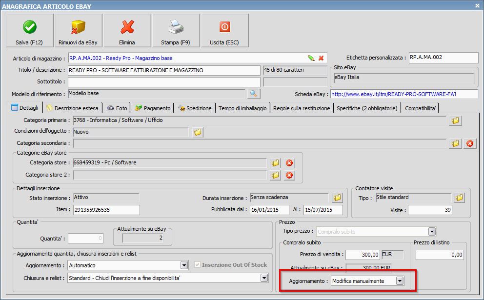 Inoltre ho visto che si potrebbe ovviare usando l'STP ma avendo le inserzioni di tipo variante dovrei impostare una ad una le inserzioni (se il mio account eBay prevede questo tipo di funzione).