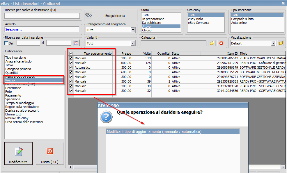 Ho letto qualche discussione passata e se ho capito bene quando vengono aggiornate le inserzioni Ready sovrascrive l'inserzione e la fa tornare al prezzo iniziale.