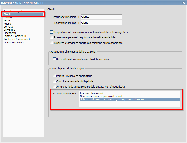 Salve, ho questo problema di messa in ordine delle anagrafiche, cioè quando ricevo ordini da eBay il gestionale mi crea l'anagrafica in automatico in "clienti" invece quando un utente si registra al sito si crea in automatico un anagrafica in "contatti". Capita spesso quindi di avere anagrafiche doppie, perché molti clienti acquistano da eBay e dal sito.