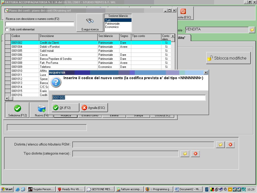 TI RINGRAZIO Faccio presente che intendo usare solo conti patrimoniali. Volevo chiederti 2 coe: 1)i crediti da cliente e i debiti v/ fornitori in essere al 31-12-06 come posso metterli nei rispettivi conti dell'esercizio 2007 ?