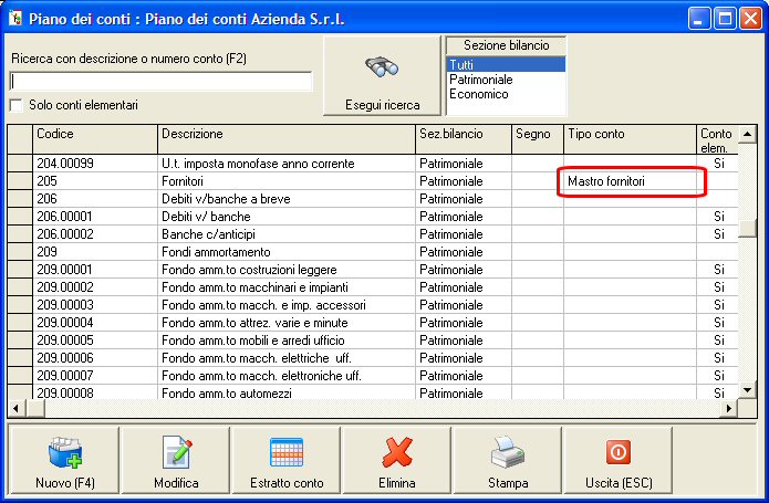 Glauca Ho cercato di inseriree la dicitura Modificando ma mi appare una finestra con indicato " Conto genrico Banca Utile d'esercizio Perdita d'esercizio Bilancio d'apertura Bilacio di chiusura " come posso inserire nella colonna Tipo conto "Mastro Clienti o Mastro Fornitori ?"