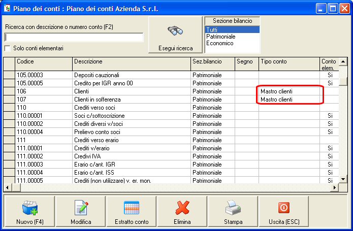Verifica di aver impostato questa opzione sul conto CLIENTI e FORNITORI