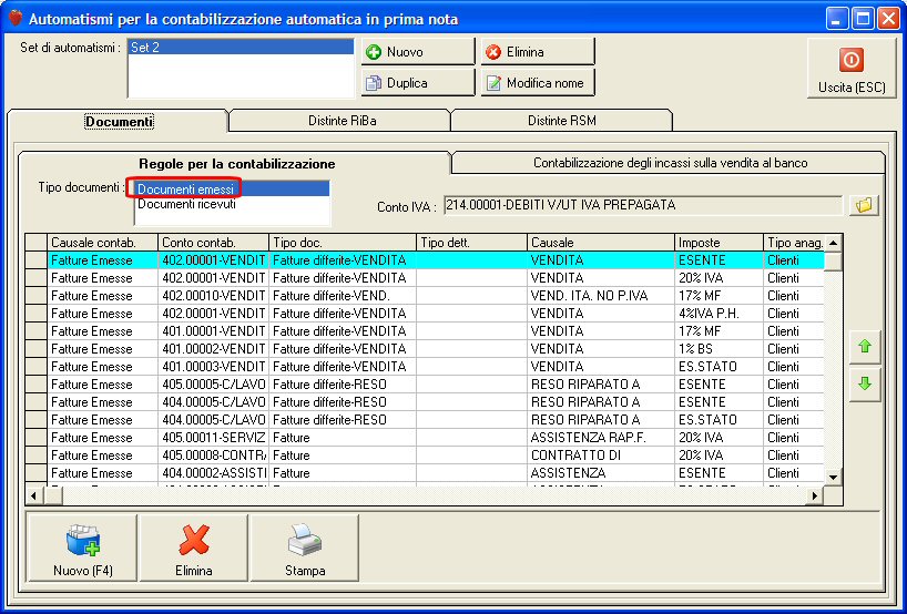 Ora cliccando su NUOVO puoi settare i casi previsti nell'emissione dei tuoi documenti...