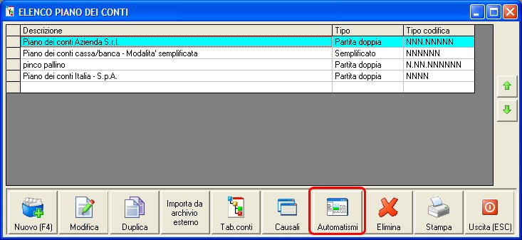 Citazione: 2) per contabilizzare le fatture clienti (e ovviamente anche quelle fornitori) dopo averle emesse devo registrale manualmente in Prima Nota o la registrazione in dare del Conto CREDITI CLIENTI E avere FATTURE CLIENTI viene fatta da Ready in automatico ? Se vuoi contabilizzare in automatico i documenti emessi e ricevuti devi crearti degli automatismi in modo da istruire Ready su come devono essere fatte le registrazioni in base al tuo Piano dei conti. Per farlo devi aprire AUTOMATISMI che trovi in AMMIN / PIANO DEI CONTI.