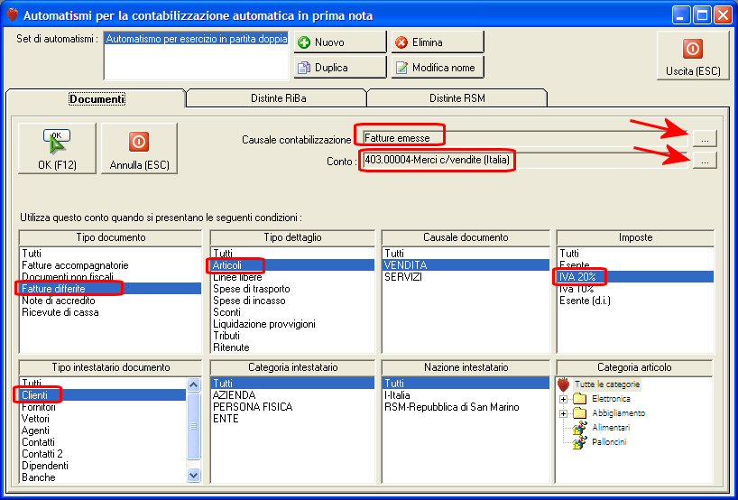Sarò piyu preciso scusa. Nel corpo della fattura ho anch le spese di trasporto. Io non voglio che lo metta in automatico in oprima nota come PRODOTTO FINITO C/ VENDITE (iol'ho chiamato cosi), ma voglio che mi dica spese d trasporto. come faccio?
