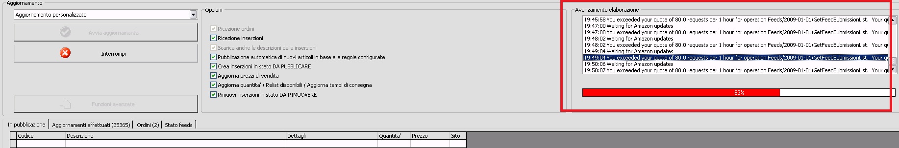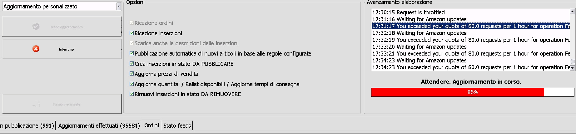 Non si tratta in ogni caso di un errore, e' solo un avviso che indica che le richieste ricevute dai loro server sono troppe e quindi Amazon lascera' passare qualche minuto o decina di minuti, prima di accettare nuove richieste. Lasciando la procedura in esecuzione viene poi correttamente completata, giusto?