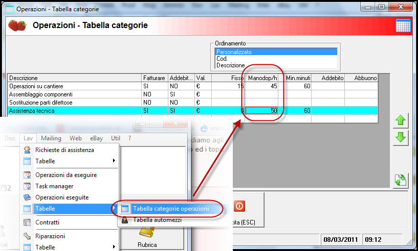 Gestione interventi tecnici (costi orari, diritti di chiamata e ricambi)