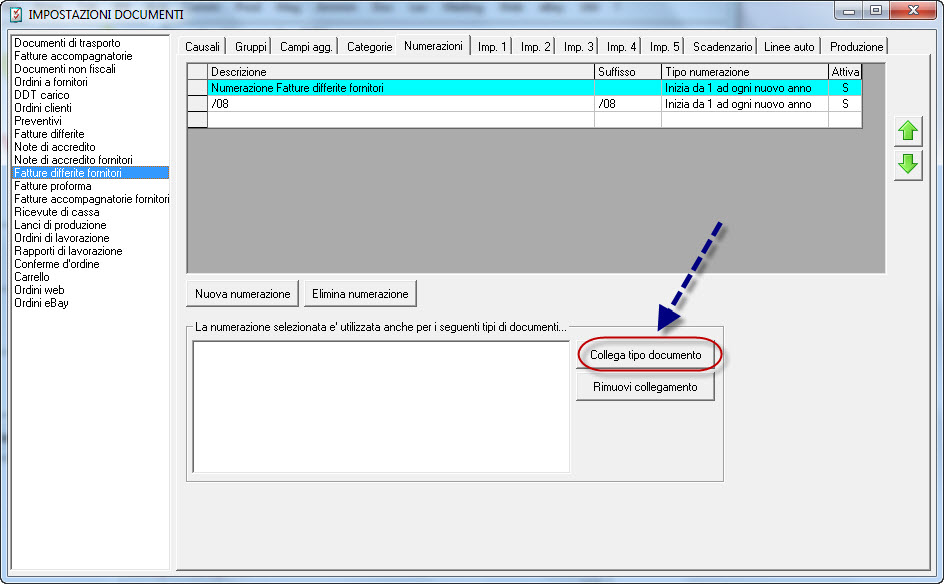 vediamo se ho capito il funzionamento, faccio un ordine a fornitore e quando arriva il materiale creo un ddt di carico da fornitore con causale acquisto. Quando mi arriva la fattura da fornitore converto il ddt di carico in fattura differita a fornitore, cosi tengo traccia che quel carico e' gia stato fatturato. il problema e' che la fattura differita a fornitore che e' solo un documento interno, mi incrementa anche la numerazione della fattura differita a cliente, creando numerazioni non continuative, perche la fattura differita di ready a cliente va al commercialista, mentre quella a fornitore no perche viene portata la fattura originale del fornitore stesso. si puo separare le due numerazioni delle fatture differite?