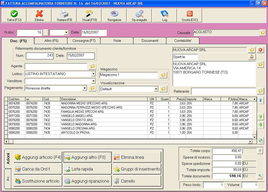 Al momento utilizzo la 9.1.15, la cosa strana è che fino a qualche tempo fa ero sicuro che funzionasse, vedevo l'avviso quando inserivo un codice già esistente, ma da qualche tempo non lo vedo più e l'ho notato solo per caso, avevo l'impressione che dei codici di certi fornitori ci fossero già ed ho controllato... da qui il problema!