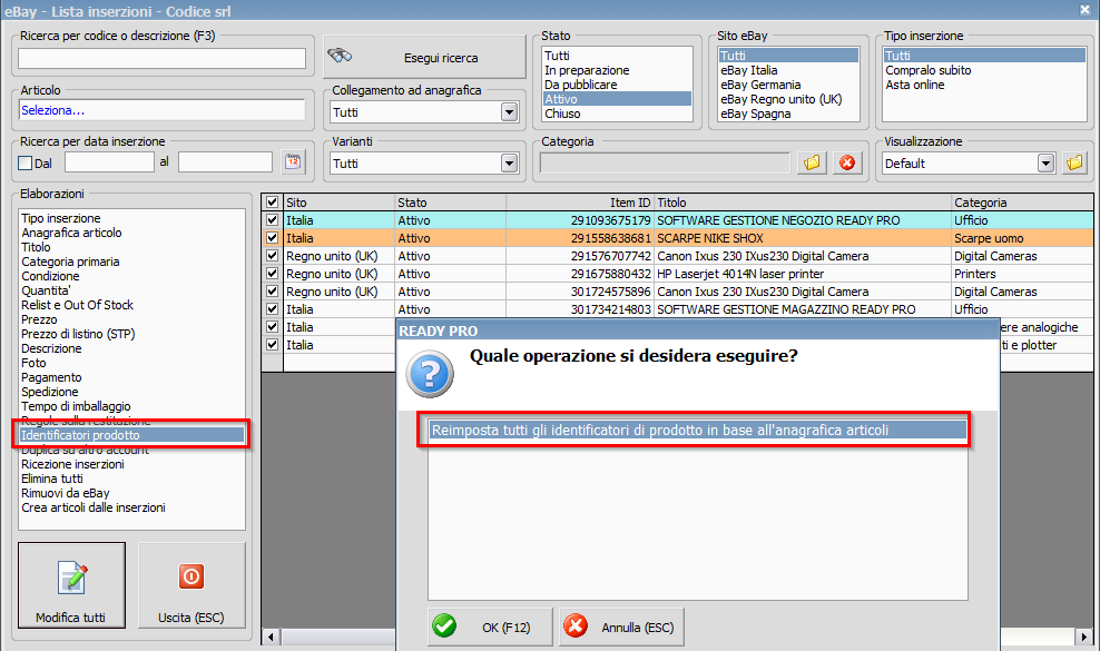 nelle impostazioni noi abbiamo attivato "invia ad ebay etc..", ovviamente il problema si pone solo sulle vecchie inserzioni