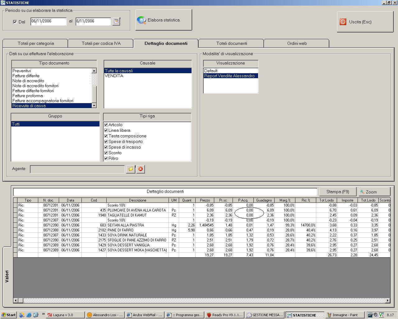 Ciao, volevo sapere come mai nelle statistiche di vendita "Dettaglio Documenti", dove posso scegliere per articolo se vedere il ricarico o il margine etc..., in molti articoli (ma non tutti) non riesco a vedere il costo d'acquisto nonostante nell'anagrafica articolo il prezzo di acquisto è presente nella "Linguetta Fornitori", ma potrebbe non essere inserito nella "Linguetta Listini" come costo d'acquisto. Hi provato a inserirlo nella "Linguetta Listini" ma nella statistica non sembra cambiare niente. Esiste qualche forma di ricalcolo oppure ditemi cosa posso fare. Grazie mille.