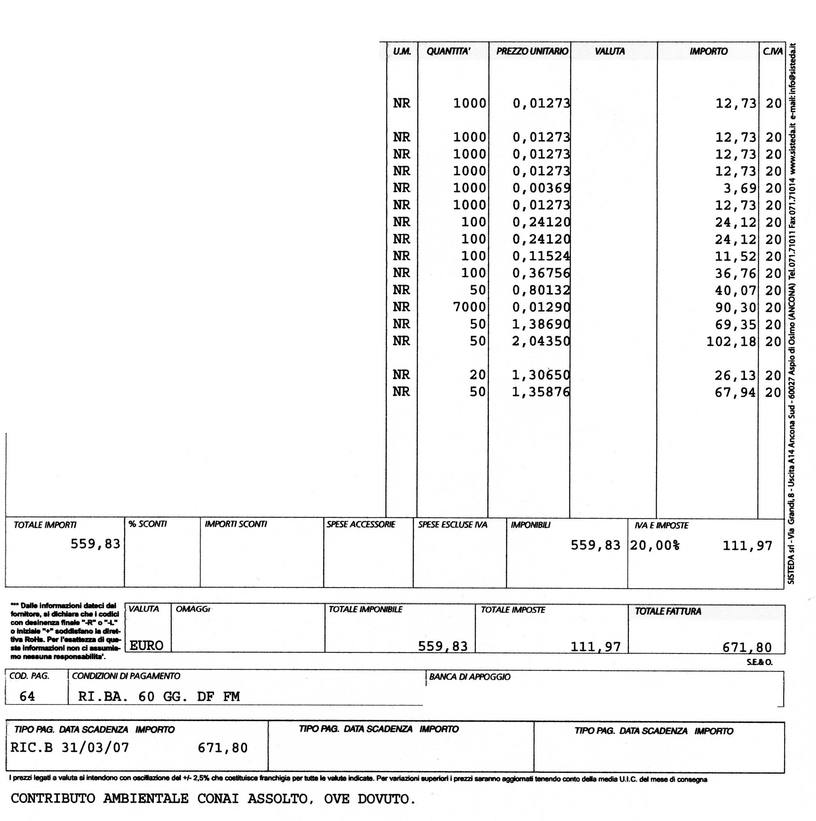 Detto questo mi pare che potrai essere d'accordo con me che il sistema di calcolo che usa il tuo fornitore e' sbagliato Se il fornitore ad esempio ti facesse una DDT con 100 righe da 1PZ cadauno con questo sistema il totale del documento sarebbe 37,00 euro (cioe' pagheresti 24 centesimi in piu' per la stessa identica quantita' di merce)