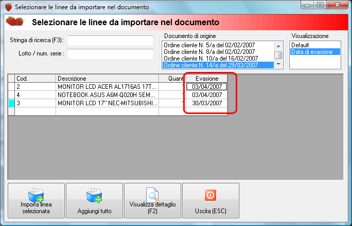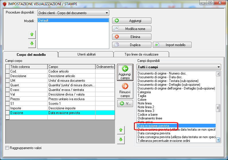 Buongiorno, un cliente quando compila gli ordini cliente inserisce per ogni articolo la data di evasione prevista che può essere differente da articolo a articolo. Ogni giorno ha la necessità di poter richiamare gli ordinativi e di verificare in un solo listato quali articoli siano in scadenza nel tal giorno in modo da evadere solo quelli. In ready ho visto che vi è la possibilità di assegnare anche un'unica data di evasione per l'intero ordine ma questo non soddisfa il cliente in quanto per ogni ordinativo può avere articoli con previsione di evasione diversa.