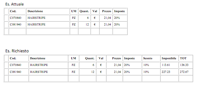Quando compilo una nuova fattura di vendita accompagnatoria e il cliente a cui sarà destinata la vendita ha nella sua anagrafica una condizione speciale di vendita, Sconto del 10%, è possibile renderlo visibile nelle griglie quando inserisco gli articoli questo sconto,l’imponibile e TOT, ed eventualmente se voglio modificare lo sconto o solo su una riga del documento??? Questo perché devo sempre andare a controllare nell’anteprima di stampa se e tutto ok e come sopra indicato poter modificare solo una riga o più durante la fase di compilazione del documento.