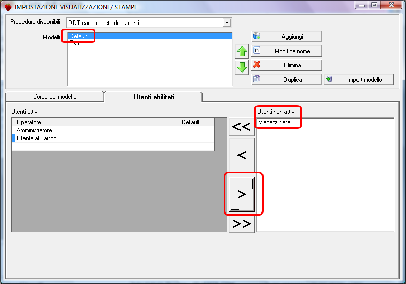 DDT CARICO MAGAZZINO: visione/modifica utenti non abilitati