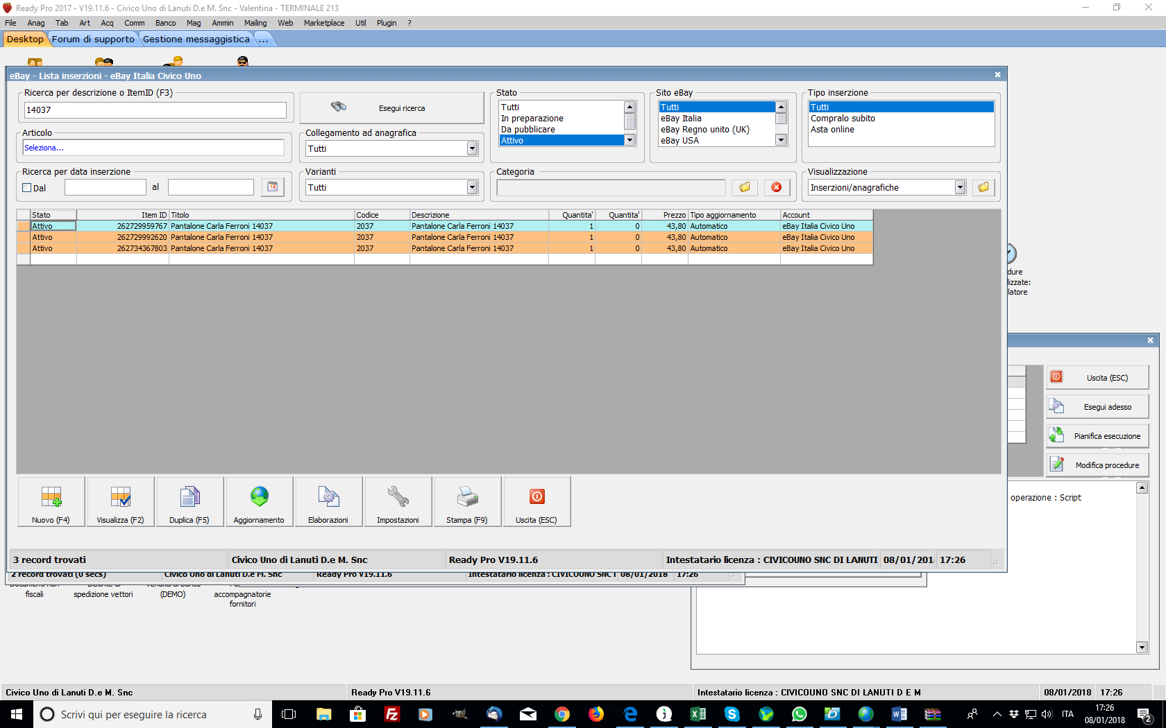 3) screenshot di come e' configurato l'account eBay in relazione all'aggiornamento quantita' (e se le quantita' sono calcolate tramite script anche copia dello script relativo)