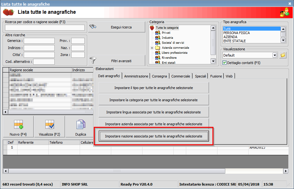 Sulla prossima versione di Ready Pro faremo comunque in modo che venga identificata anche la nazione con codice "I" (quindi senza perdere tempo a fare modifiche potete anche attendere qualche settimana, e con la nuova release dovreste trovare gia' l'opzione visibile)