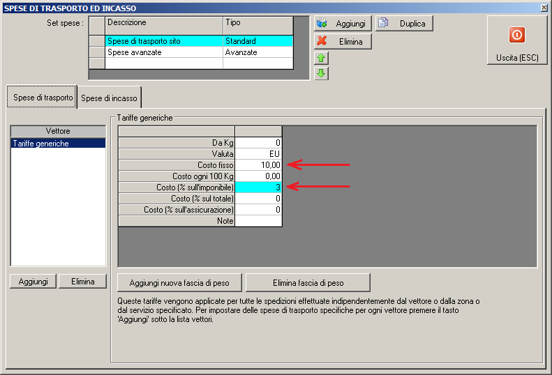 Ciao a tutti vorrei impostare delle spese di trasporto standard fisse per tutta italia, molto semplici e senza fasce di peso, (Euro 9,90 ad esempio) per il primo articolo acquistato e vorrei che queste fossero chiaramente visualizzate sul carrello anche prima di loggarsi; è possibile??