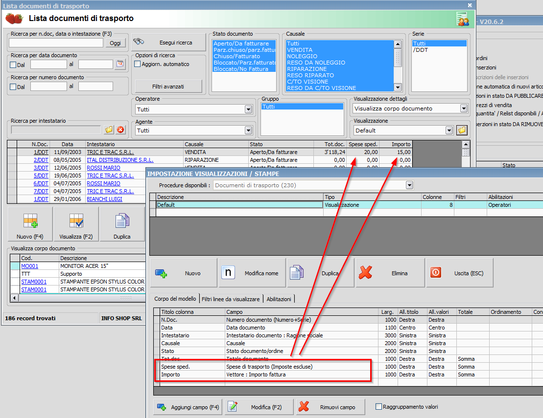 il problema sorge quando ho le righe della spedizione che il cliente mi paga; giustamente non ho il relativo costo di dettaglio, che però carico all'interno dei documenti nella sezione trasporto, nel campo "Importo fatt. Vett.";
