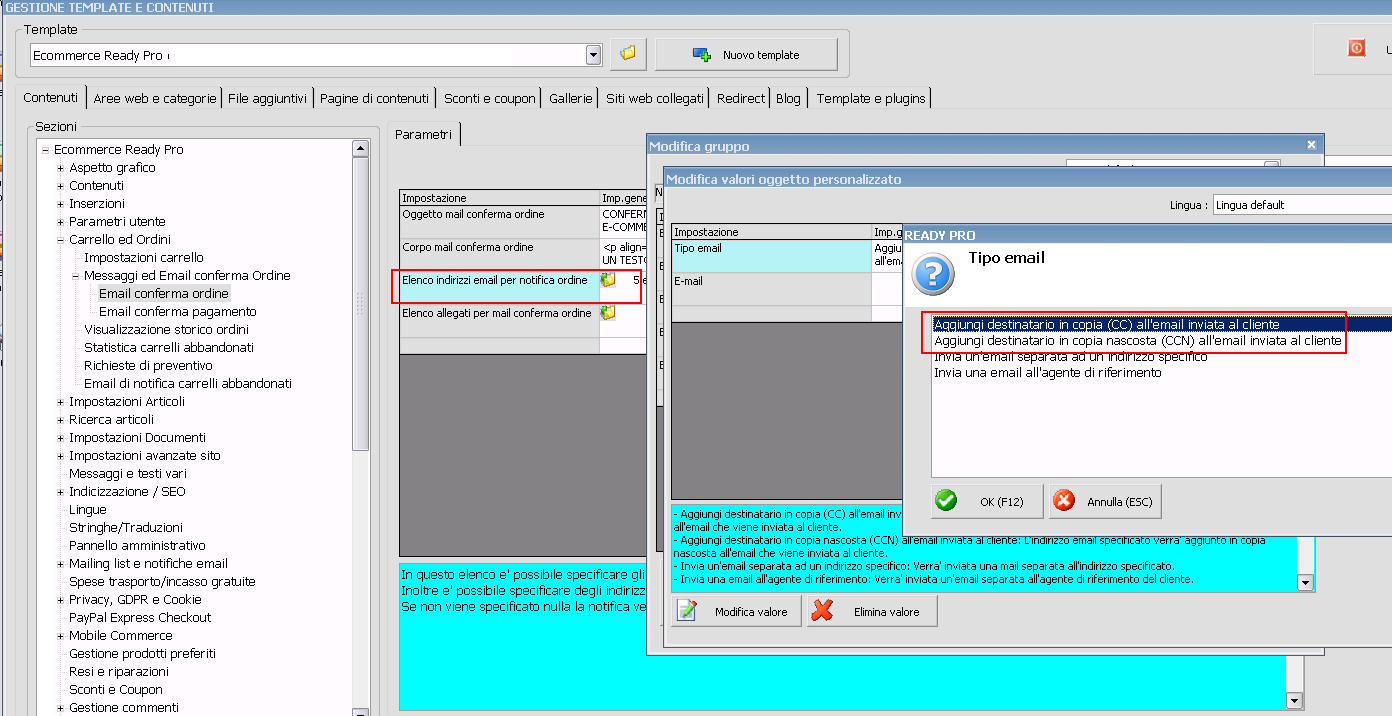 E' possibile fare come dicono? Se si, dove posso trovare l'impostazioni per inserire la loro mail in copia nascosta?