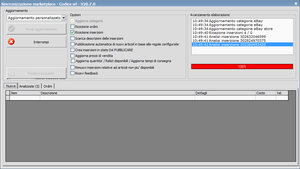 Citazione: Una domanda per la chiusura d'inserzioni di articoli non disponibili notiamo che la sincronizzazione è molto più lenta di quella del sito impiegandoci circa 30 minuti per 700 articoli (naturalmente la chiusura è di 1/2 articoli per volta). E' Normale?? Sì, piu' o meno i tempi di eBay per la chiusura delle inserzioni sono quelli.