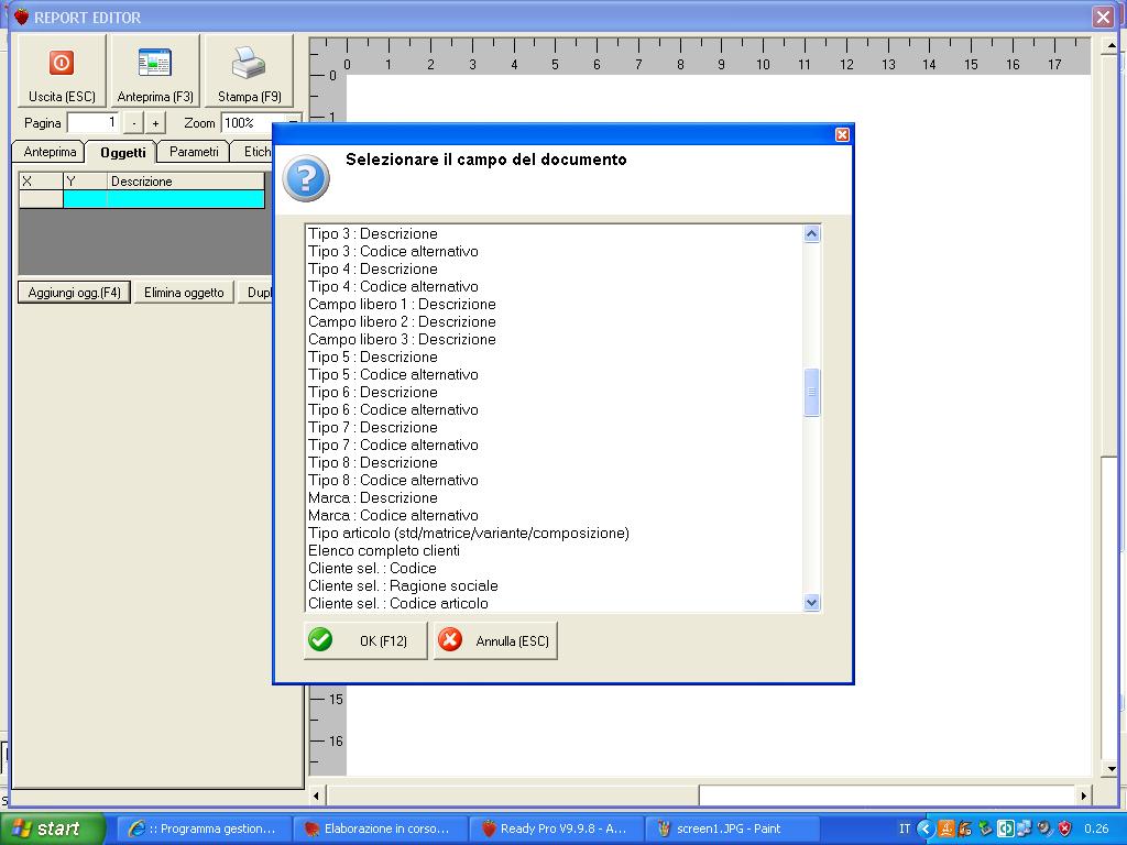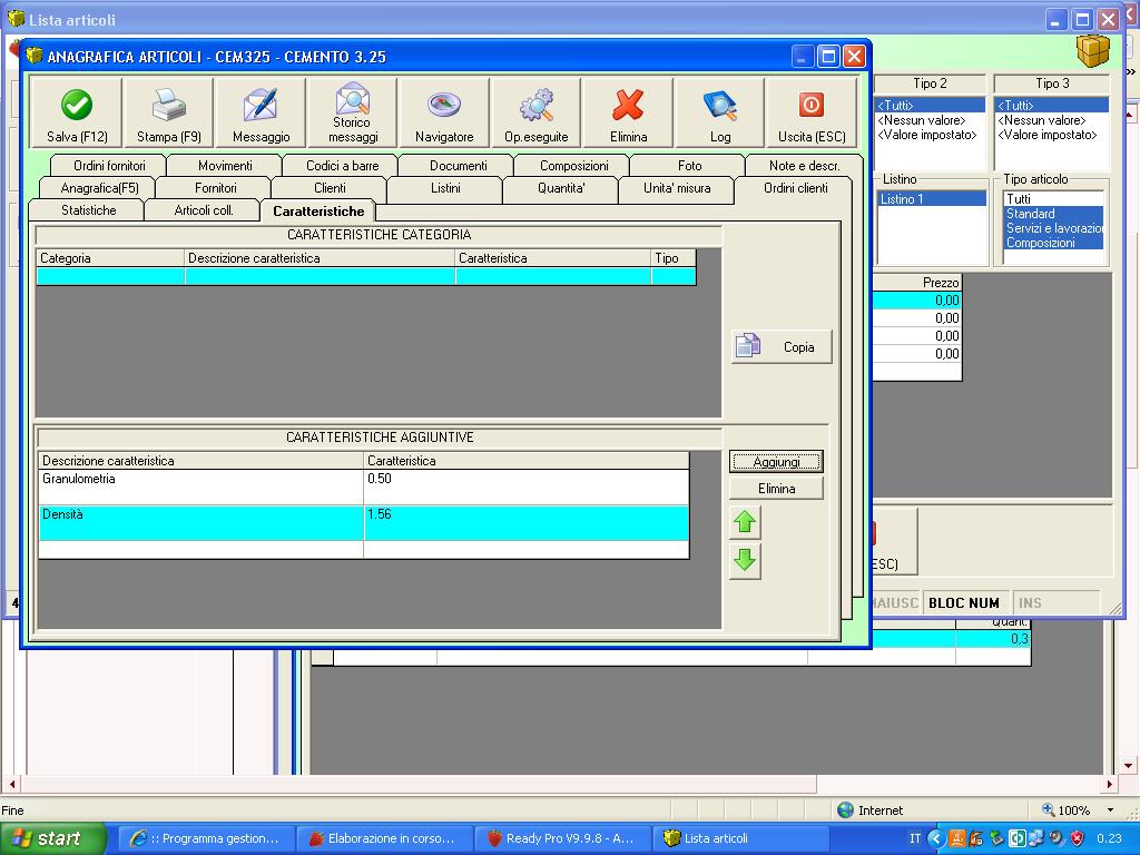 Salve il cliente che sto trattando al quale ho venduto Ready, un Grazie a Glauco che mi ha assistito nelle difficoltà, mi ha chiesto se era possibile creare in Ready delle schede UNI EN degli articoli es. cemento. Nulla di difficoltoso almeno in parte infatti guardando le schede articolo mi sono accorto la possibilità di inserire le caratteristiche dell'articolo..rif. screen1...dopo aver inserito le caratteristiche ...Granulometria, durezza, ecc. vado per creare un report di stampa ad Hoc sull'articolo e scopro che non esiste nessuna voce che richiama le caratteristiche inserite nella scheda articolo . Come mai? che consiglio mi date? Buon Lavoro.