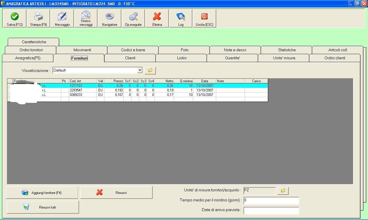 Non ho detto codici differenti in base alla quantità ma il solito prodotto con codici differenti e prezzi diversi in base alle quantità. In pratica prendiamo ad esempio un componente elettronico con sigla LM324SMD il fornitore può avere più codici per questo componente perchè sono differenziati in base alla marca (produttore) quindi possiamo avere questa situazione dal solito fornitore: LM324SMD codice fornitore 1211103 (marca Philips) LM324SMD codice fornitore 2293547 (marca Osram) LM324SMD codice fornitore 8389233 (marca GE)