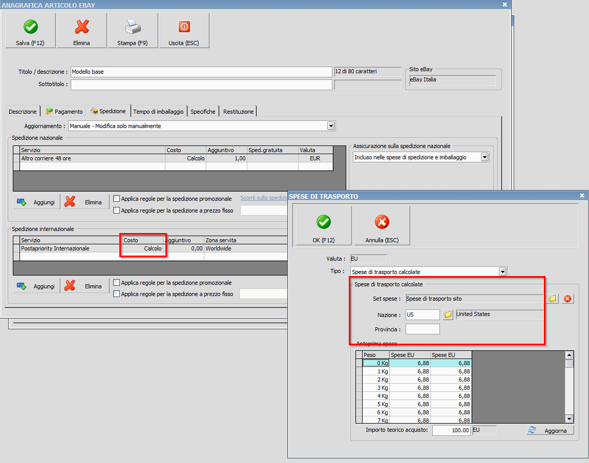 Ciao per impostare il costo di spedizione con Ebay ho usato il set Avanzato con 4 zone di consegna di cui Italia, Europa, World Popolato e Sud America. (A parte che se inserisco due diversi servizi di spedizione ad esempio Spedizione con corriere espresso e Spedizione con posta raccomandata in Ebay appare un solo servizio, in teoria quello che nella scaletta di Ready appare in alto, quindi non riesco a dare più opzioni di scelta spedizione al cliente) Per Italia ed Europa viene applicata la tariffa giusta, mentre per World Popolato e Sud America viene applicata la stessa tariffa. Mi ricordo che una volta in assistenza avevo visto che il tecnico aveva modificato un campo in cui a World Popolato veniva assegnato come stato di riferimento USA, mentre a Sud America veniva assegnata lo stato Argentina, anche se già in ogni zona di consegna sono presenti stati diversi, non riesco a trovare dove si modifica questo campo. Dove devo dire che per la spedizione in World popolato deve prendere come riferimento la nazione USA e per il Sud America la nazione Argentina, dove si trova questa tabella?