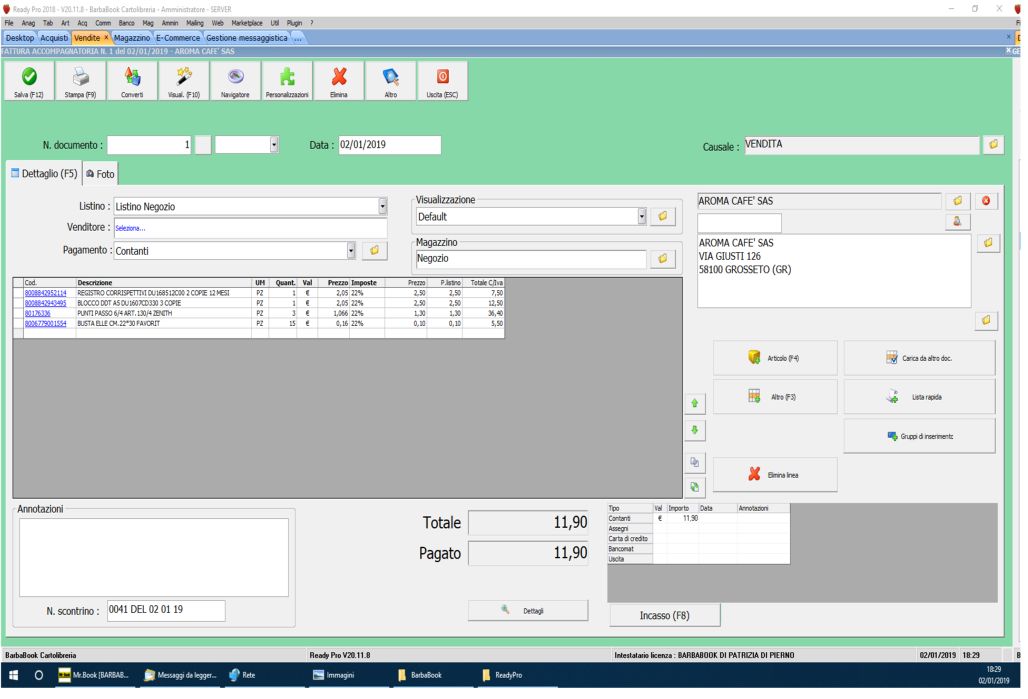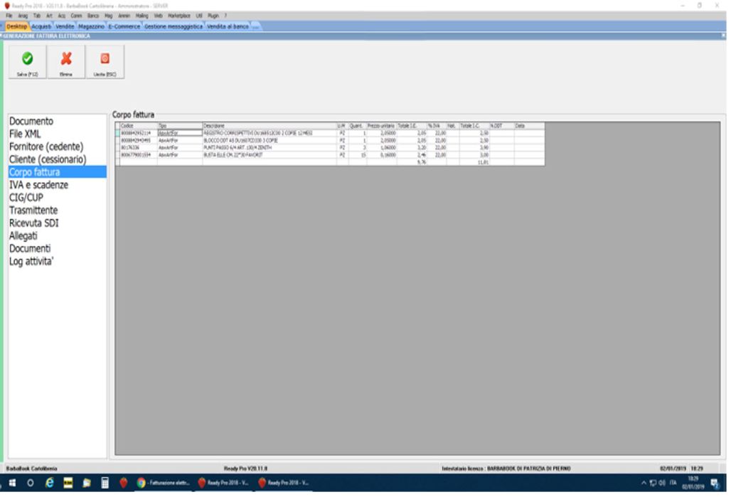 - aggiorna Ready Pro alla versione 20.11.9 rilasciata questa mattina - elimina la fattura elettronica che hai in preparazione e poi ricreala nuovamente