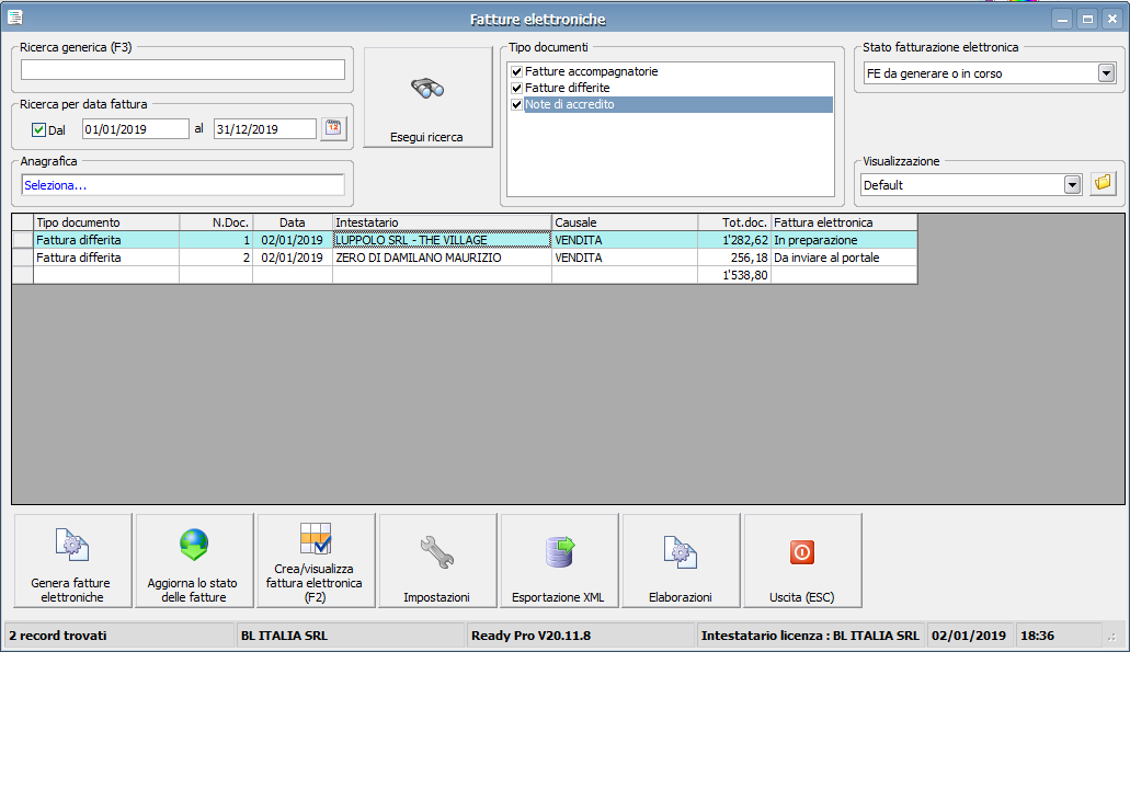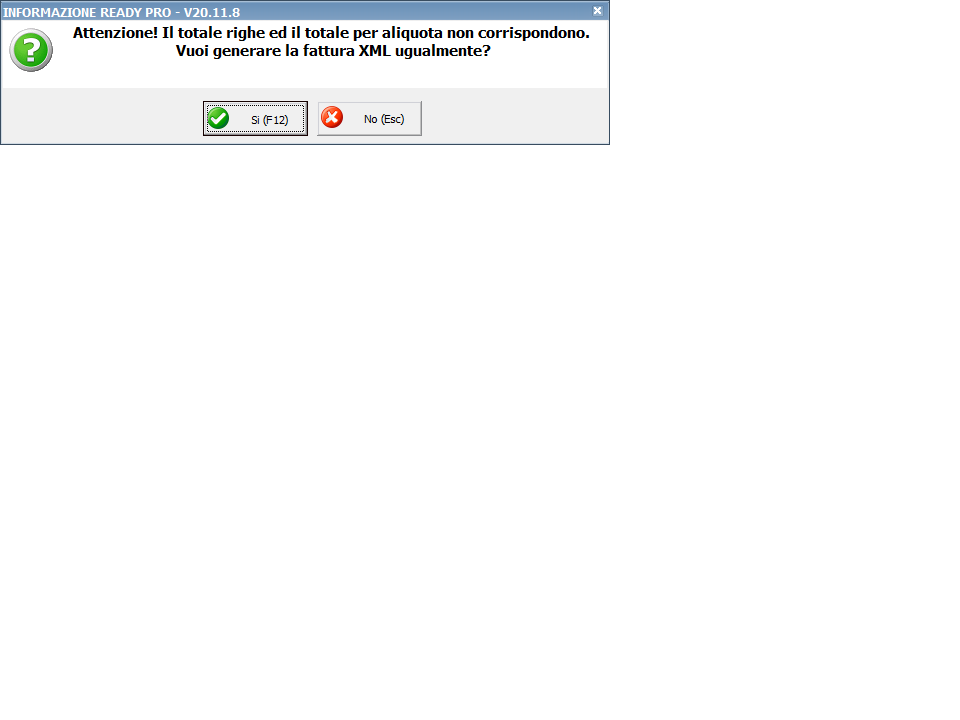- aggiorna Ready Pro alla versione 20.11.9 rilasciata questa mattina - elimina la fattura elettronica che hai in preparazione e poi ricreala nuovamente