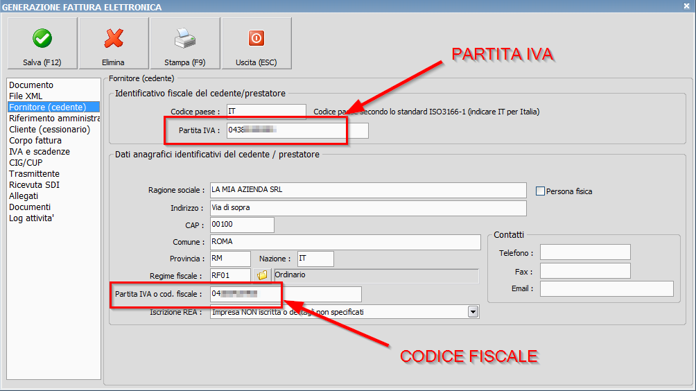 Buongirono, i nostri clienti ci avvisano che stanno ricevendo le fatture da parte nostra con partita iva e codice fiscale corrispondenti in entrambi i casi alla nostra P.IVA. Noi abbiamo seguito i suggerimento come sopra indicato da voi, ma, nel nostro caso essendo una ditta individuale abbiamo p.iva e C.F. diversi, il codice fiscale è quello della persona fisica titolare dell'azienda. Quindi per far si che il codice fiscale sia corretto dobbiamo inserirlo "Nella sezione Trasmittente alla voce "codice identificativo fiscale" ?