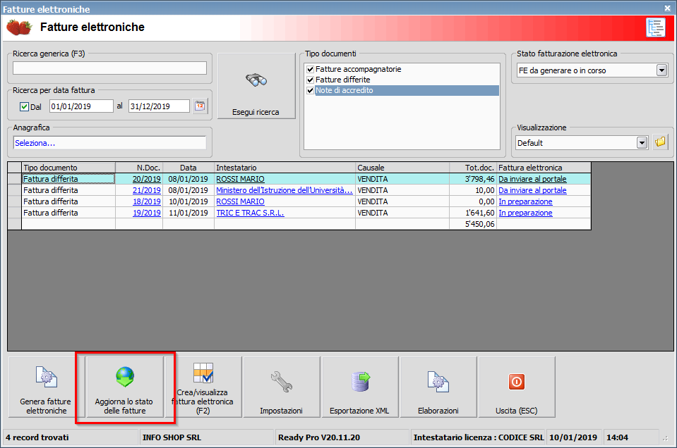 Lo stato di mancata consegna o consegnata al destinatario (come da foto allegata) la vedo solo una volta che sono entrato ed uscito in ogni singola fattura. Sbaglio qualcosa io o è un bug? Grazie