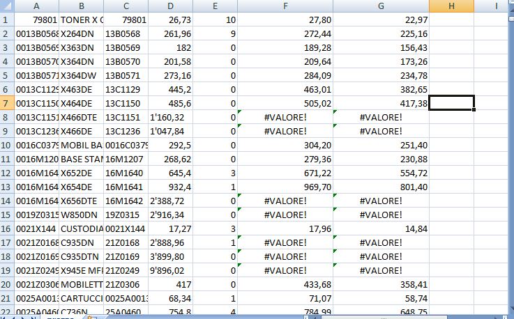 su tutti i prezzi fino a 999,99 funziona, mentre al di sopra di questo valore excel mi da errore di contenuto, dovrei modificare a mano il contenuto di 1400 celle contenente valori superiori a 1000. si può fare in automatico?