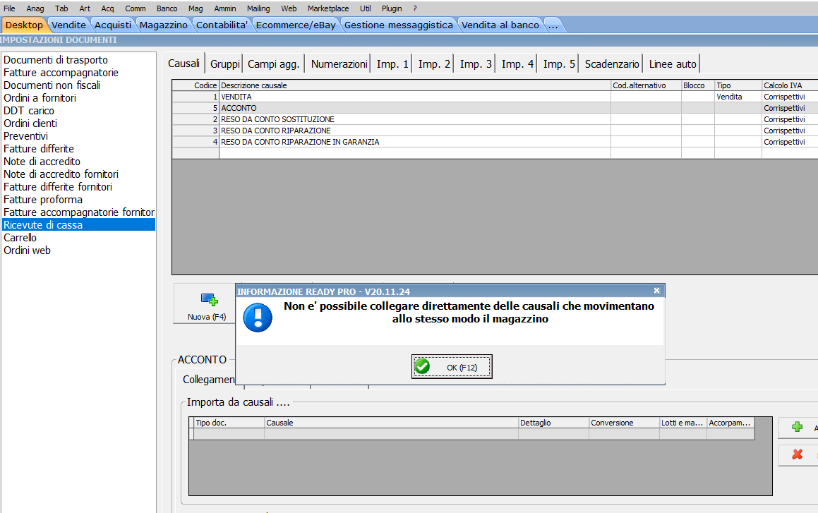 Buongiorno Alessio, la finestra sopra e' la procedura UTIL/IMPOSTAZIONI DOCUMENTI da cui si possono creare i collegamenti tra le causali https://www.readypro.it/help/it/998/collegamenti-tra-le-causali