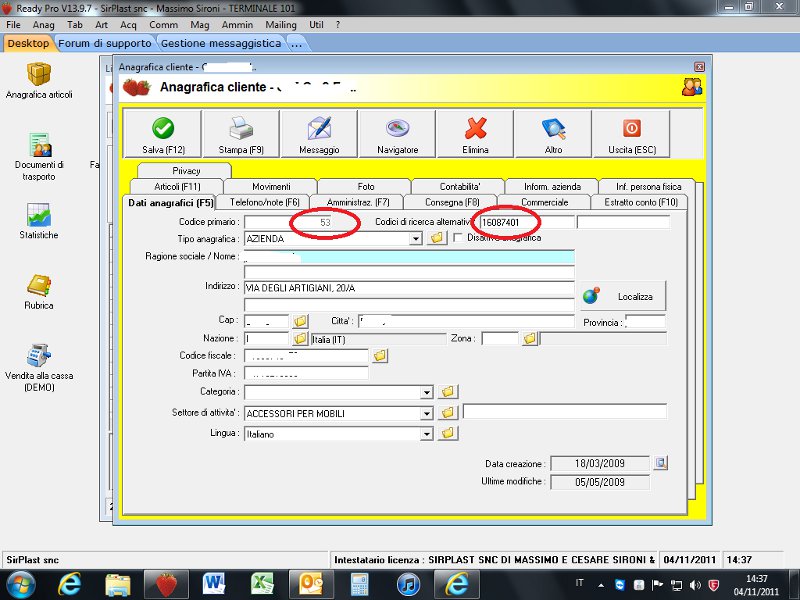 Buon pomeriggio, vorrei sapere se è possibile variare il codice primario del cliente.