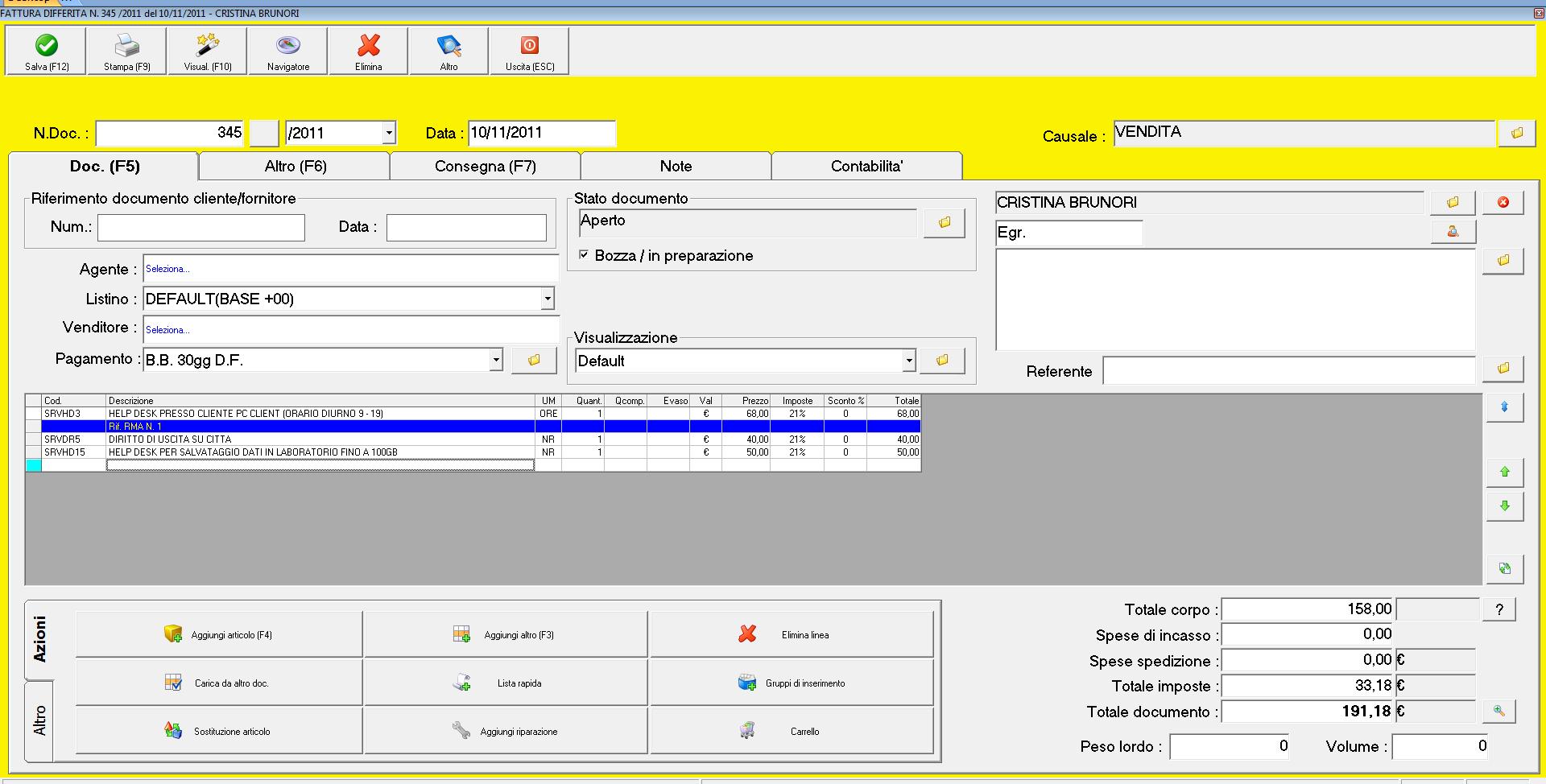 Ciao, volevamo chiedervi se era possibile far sì che nelle righe della fattura differita quando si aggiunge una riparazione compaia un testo "più chiaro e descrittivo" invece dell'attuale "Rif. RMA 1..."Allego l'esempio di una fattura differita in cui è stata caricata una riparazione. A noi servirebbe che venisse riportato nella descrizione della riga della fattura differita la descrizione dell'intervento che andremmo ad inserire in un campo della riparazione (suggeriteci per cortesia voi quale campo se esiste un campo che può essere riportatp nella descrizione della fattura).