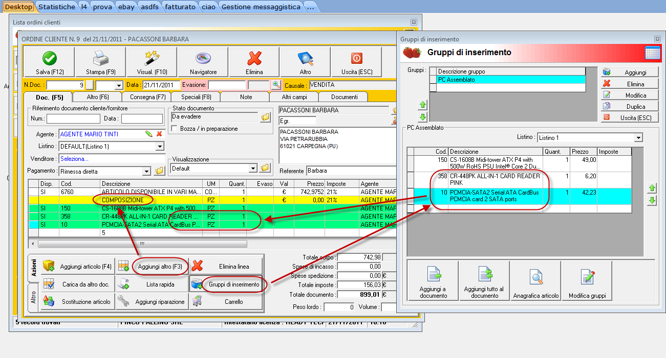 1) creo una composizione di un PC ASSEMBLATO - PC core i5 320Gb HD ....