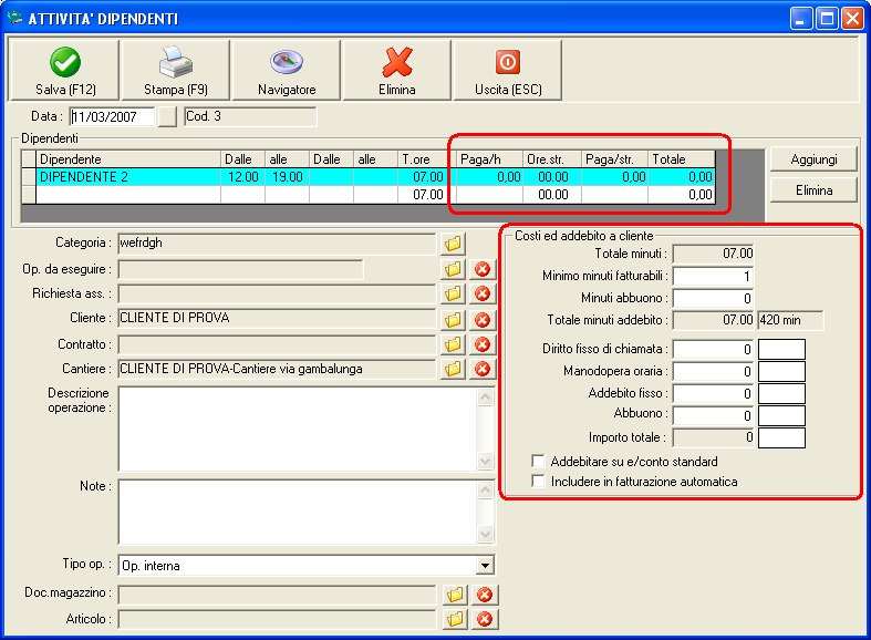 2. - Il calcolo del costo dell'operazione viene dato dal prodotto tra le ore di lavoro ed il costo orario derivato dall'anagrafica dipendente, però poi va stabilito ogni volta manualmente il costo che si vuole effettivamente imputare al cliente. Non si potrebbe legare all'anagrafica cantiere una percentuale di aumento rispetto al costo orario del dipendente da proporre automaticamente nel campo manodopera oraria ? Questo per evitare errori nelle varie fatturazioni della manodopera di un cantiere magari di lunga durata e con costo del personale fisso e concordato in anticipo.